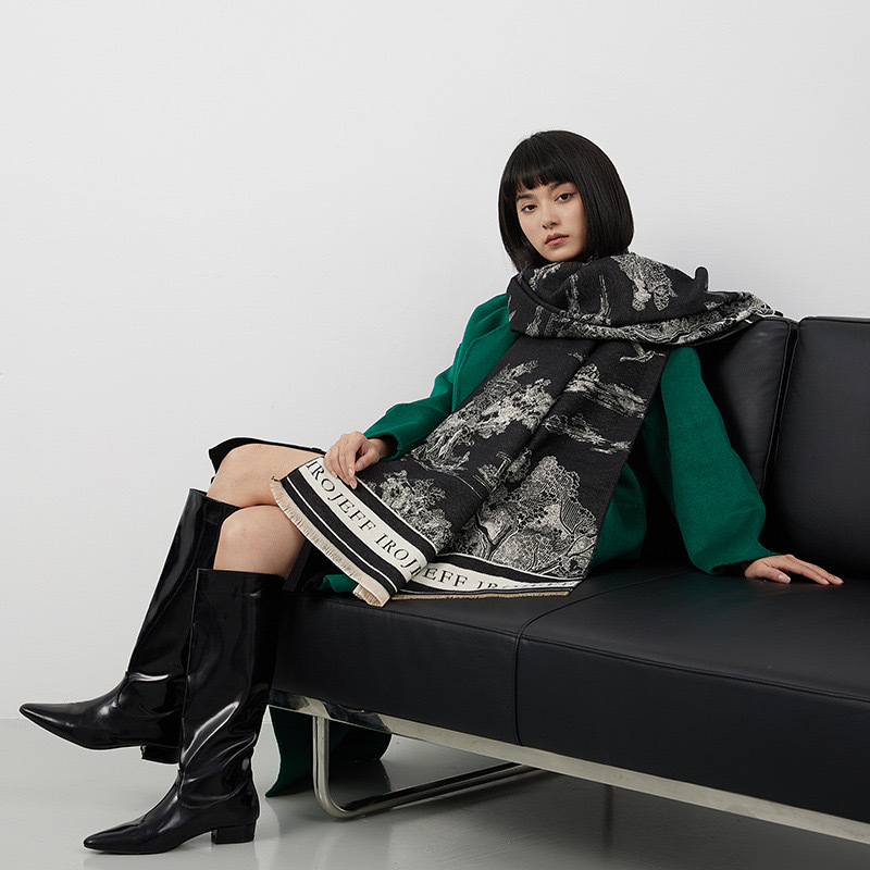 ( black)Autumn and Winter thick Jacquard scarf woman imitate sheep velvet warm shawl high