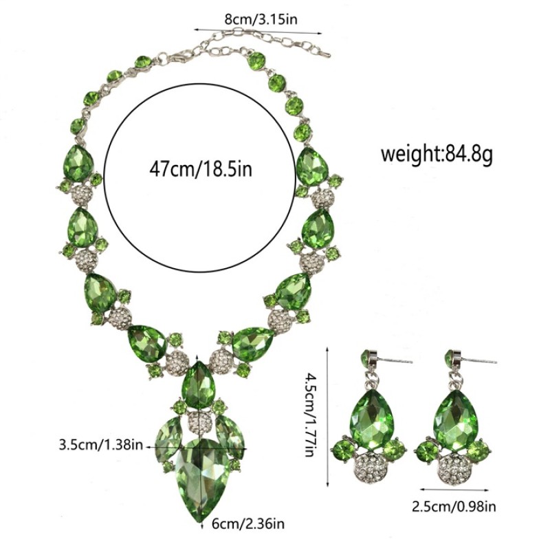 occidental style exaggerating fashion all-Purpose drop gem necklace earrings set woman bride banquet