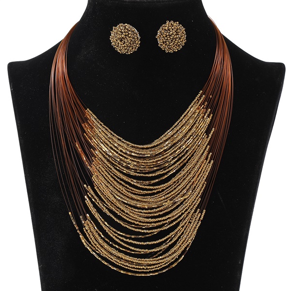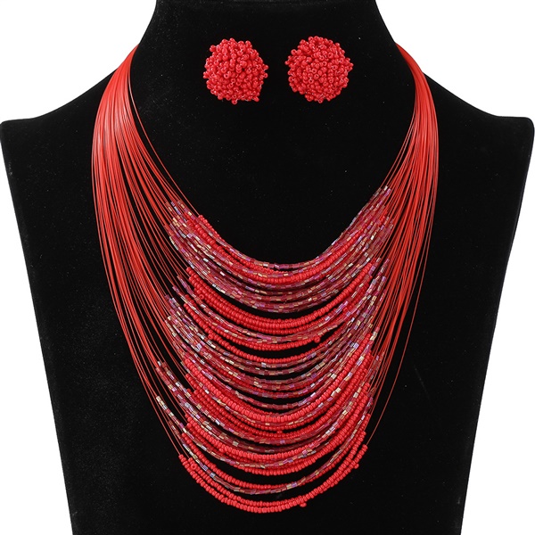 Bohemia multilayer beads necklace earrings set retro ethnic style sweater chain lady multilayer